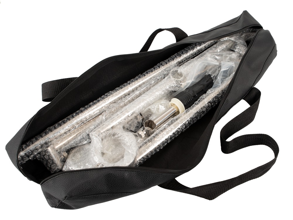 Die Stangen mit Feststellschrauben sind an der Bodenstange variabel platzierbar.