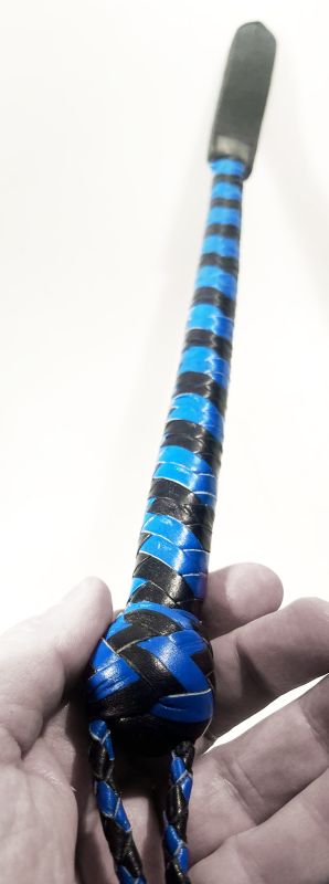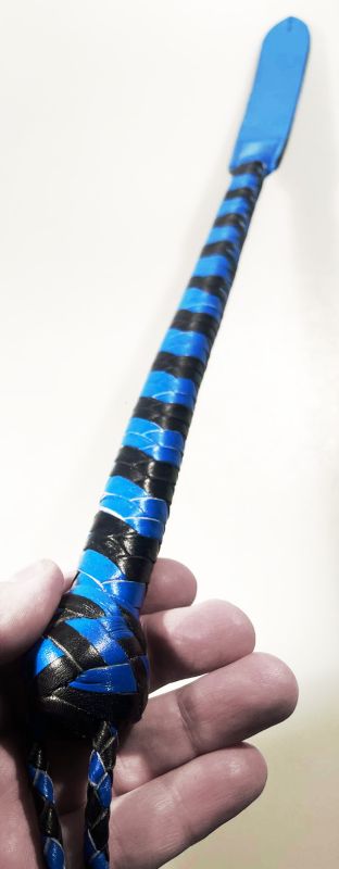 Blaue Lederpeitsche mit Griff "Modern Blue meets Baroque Gold"