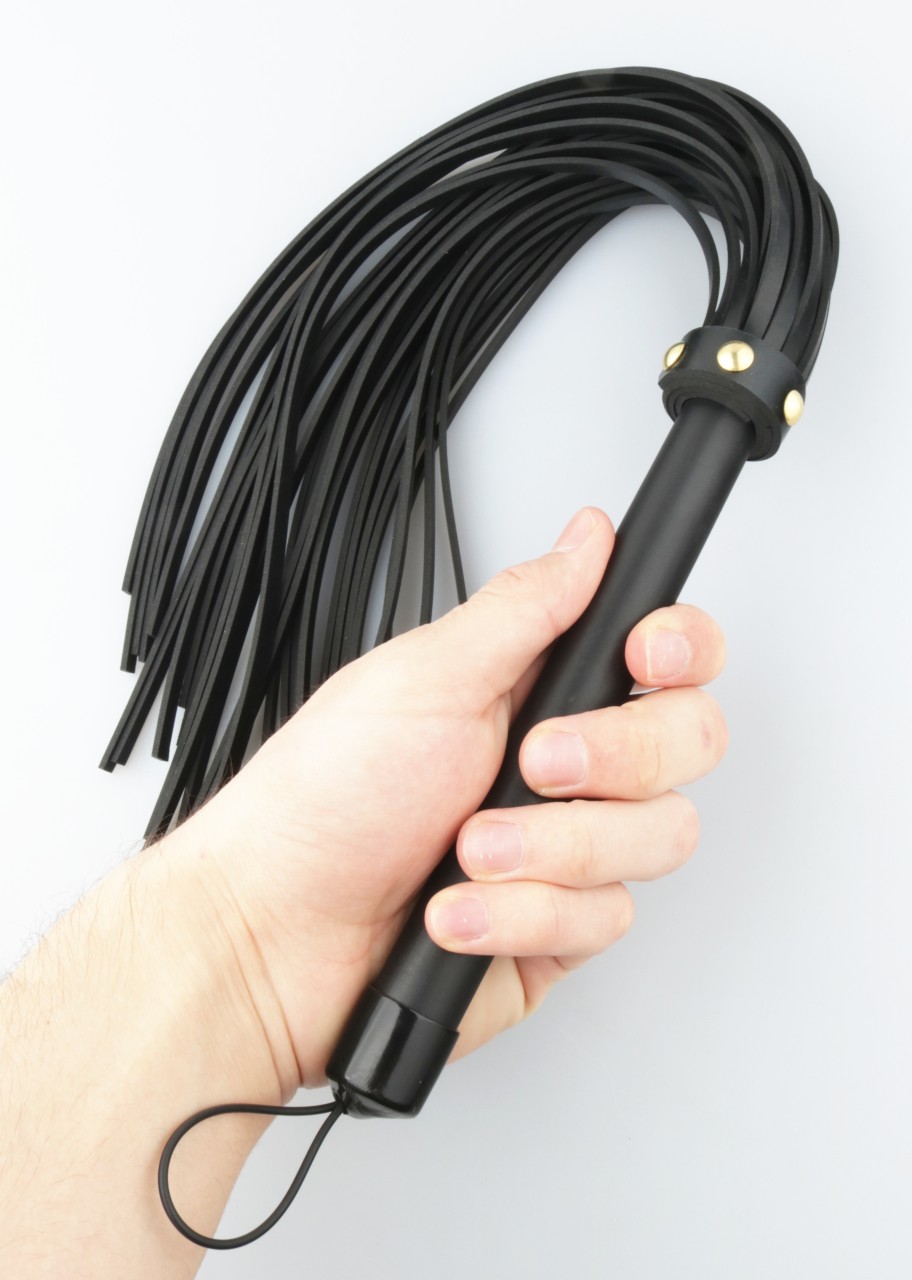 Peitsche aus Leder mit soften Riemen "Rivet Style" Schwarz