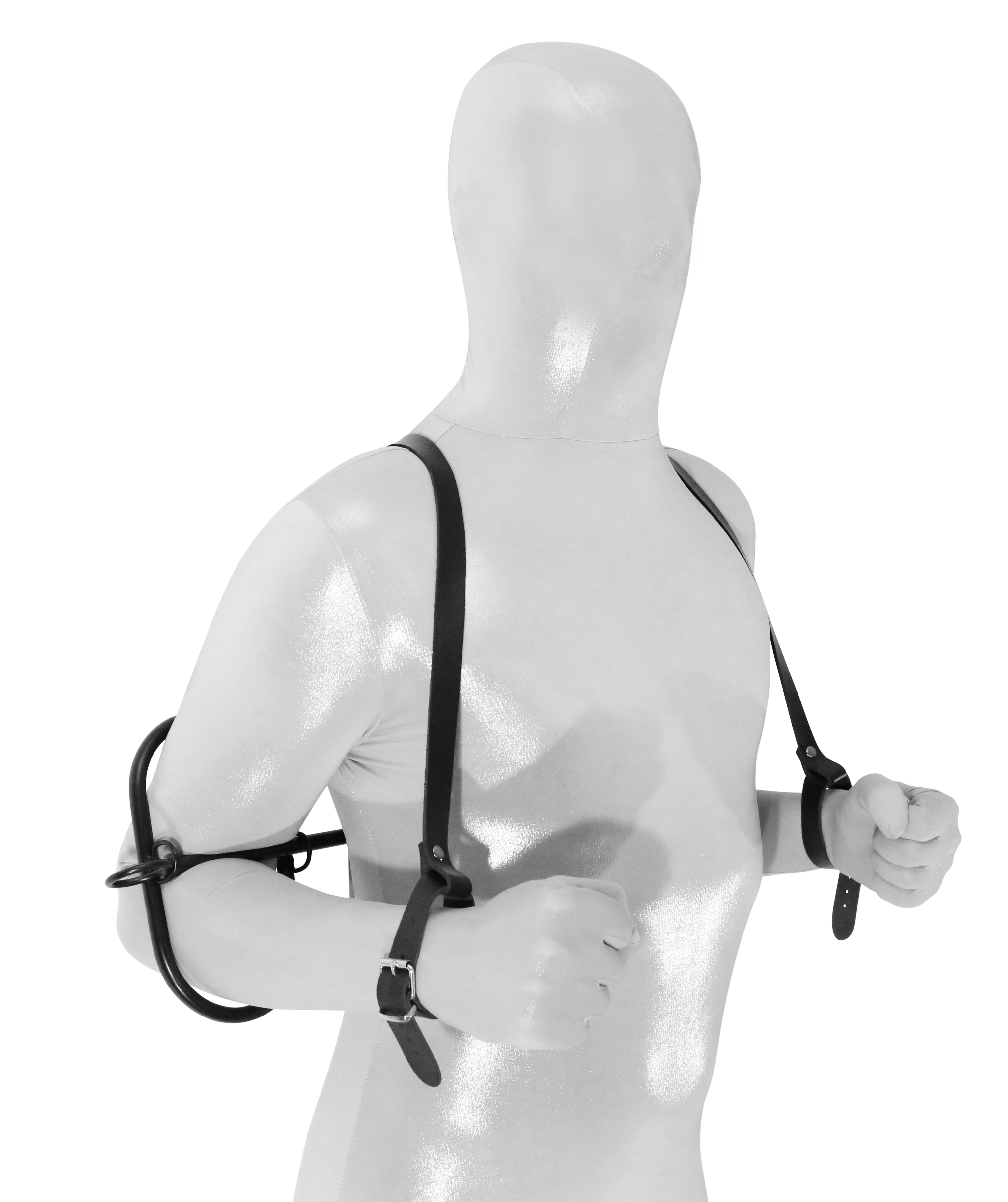 Durch die Querstange (Länge ca. 66 cm) und den Leder Gurten kann die Person so fixiert werden,