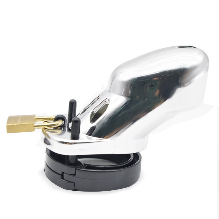 Mit diesem schmucken Peniskäfig wird ein aufmüpfiger Lümmel eingefangen und weggesperrt, so dass er nicht entkommen kann, bis jemand mit Schlüssel ihn wieder freilässt. Durch die Öffnungen links und rechts im Käfig kann der Gefangene nach Lust und Laune mit Krabbeln, Pieksen oder sonstigen kleinen Gemeinheiten in genau der Intensität behandelt werden, die er sich verdient hat.