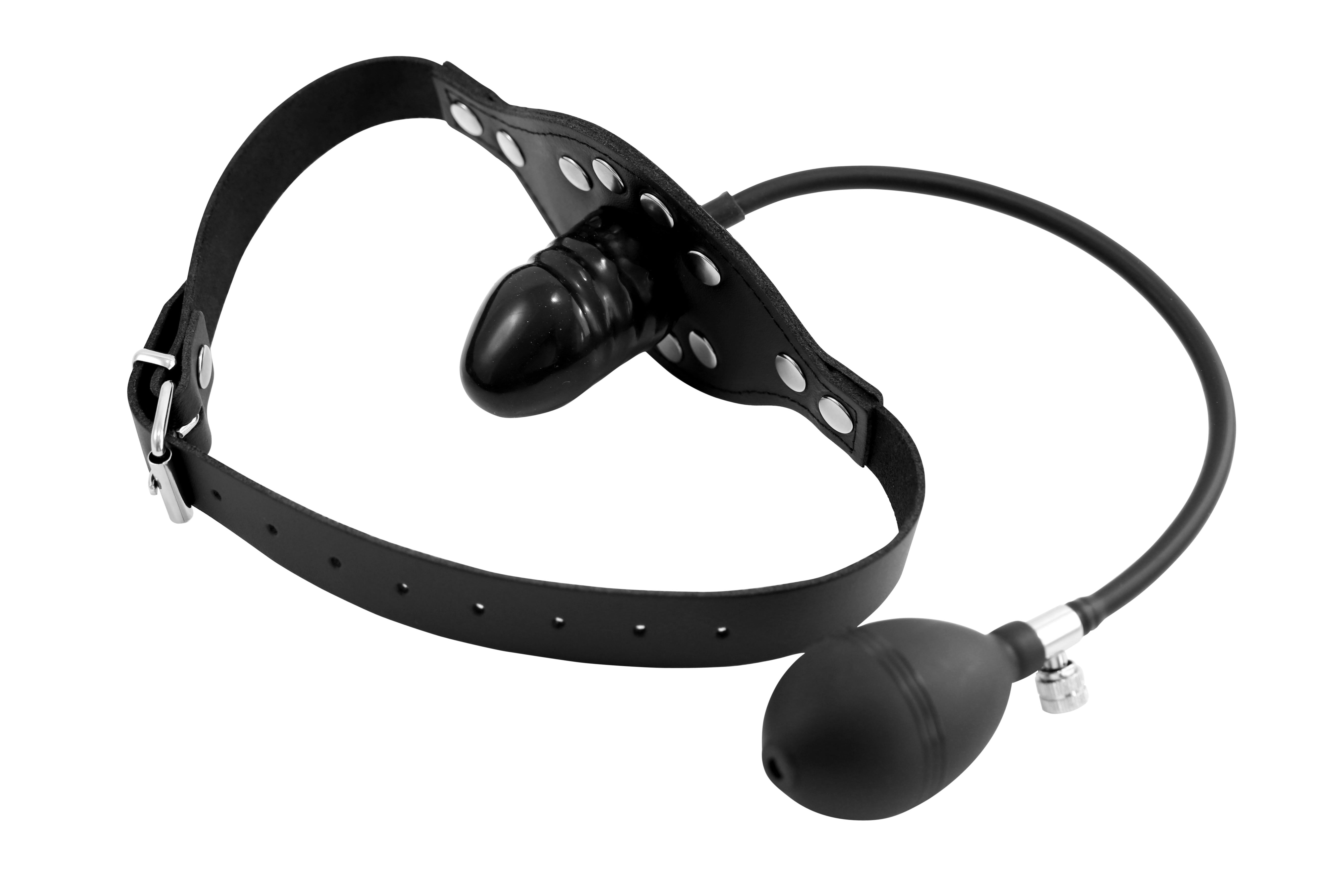 Knebel aus Leder mit Pump Knebel (aus Latex ca. 6 cm lang / Ø 3 cm bis 7 cm)