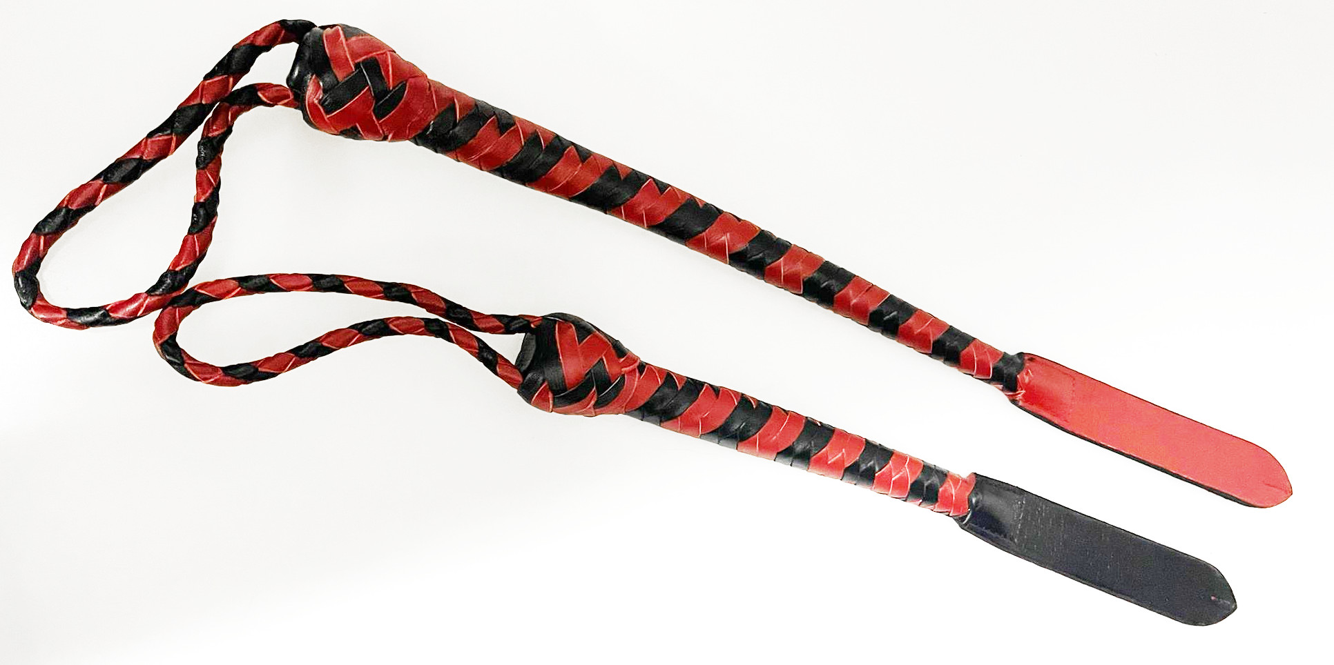 Kurzer Kantschu - Hochwertige Lederpeitsche mit Klatsche 36cm - RedBlack