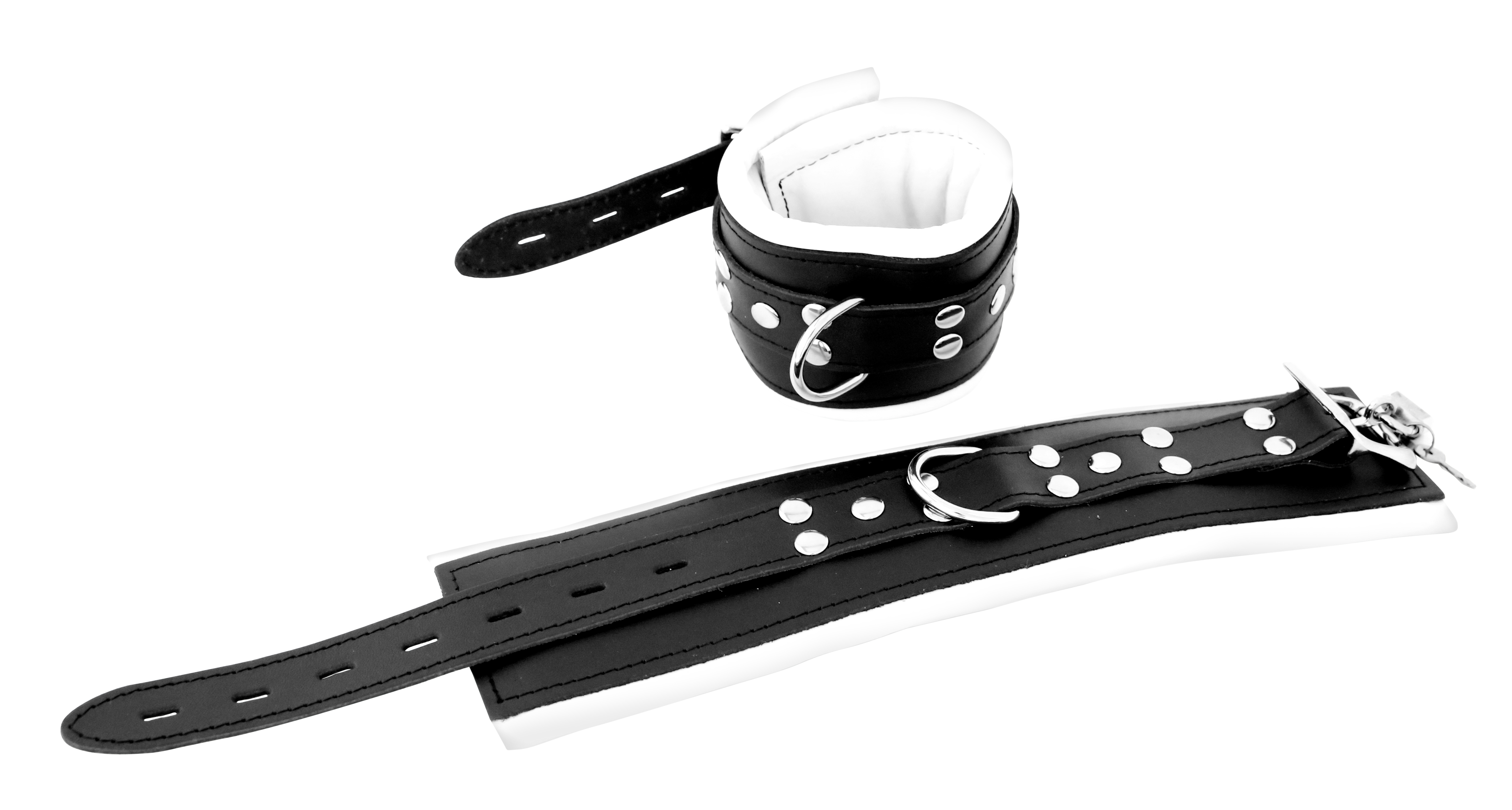 Leder Fußfessel weiß ca. 8 cm breit gepolstert abschließbar.