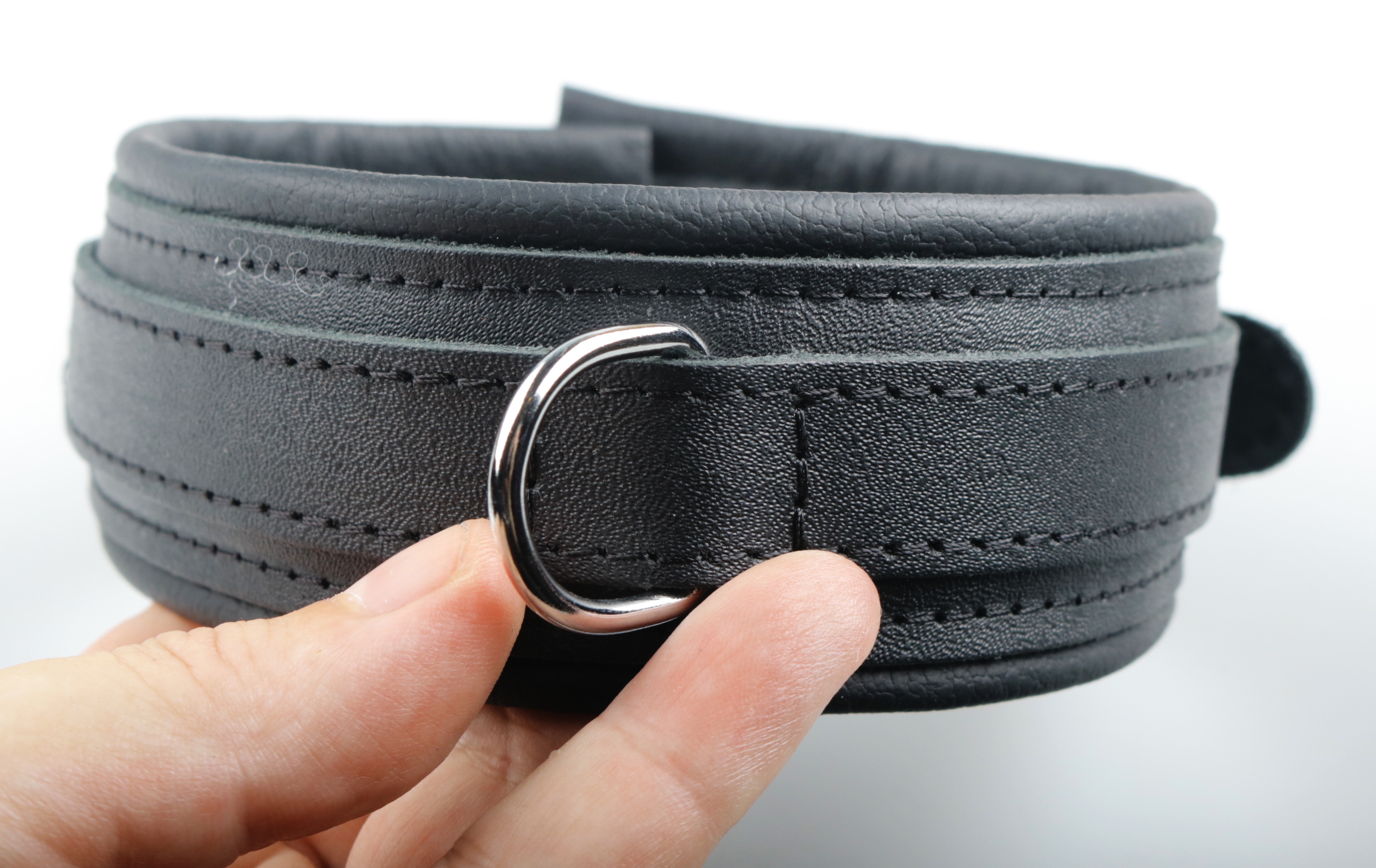 Innen mit weichem Leder gepolstert. D-Ring geschweißt.