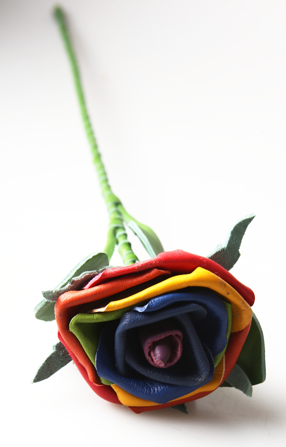 Leder Rose - Regenbogen - grüne Blätter