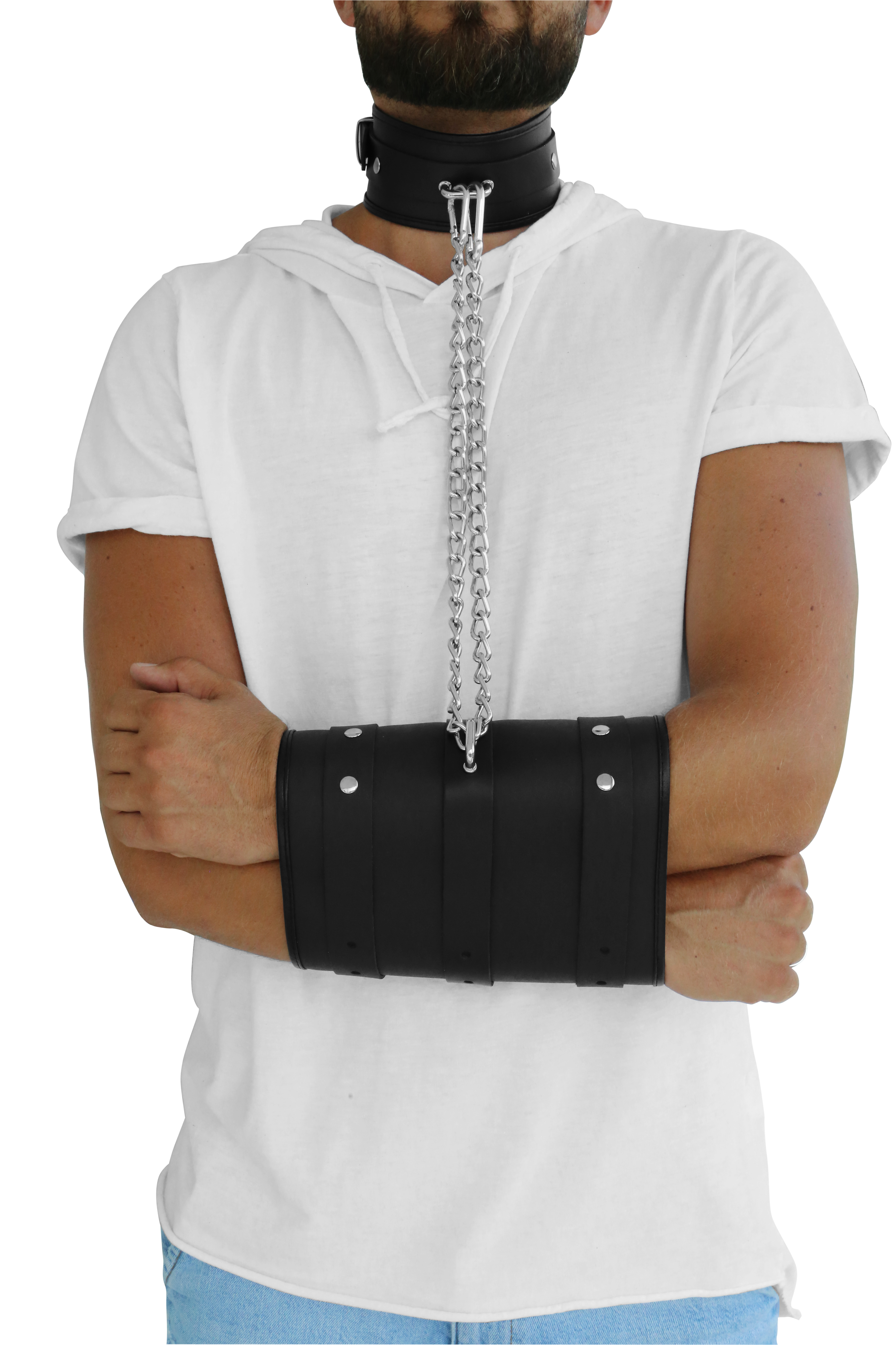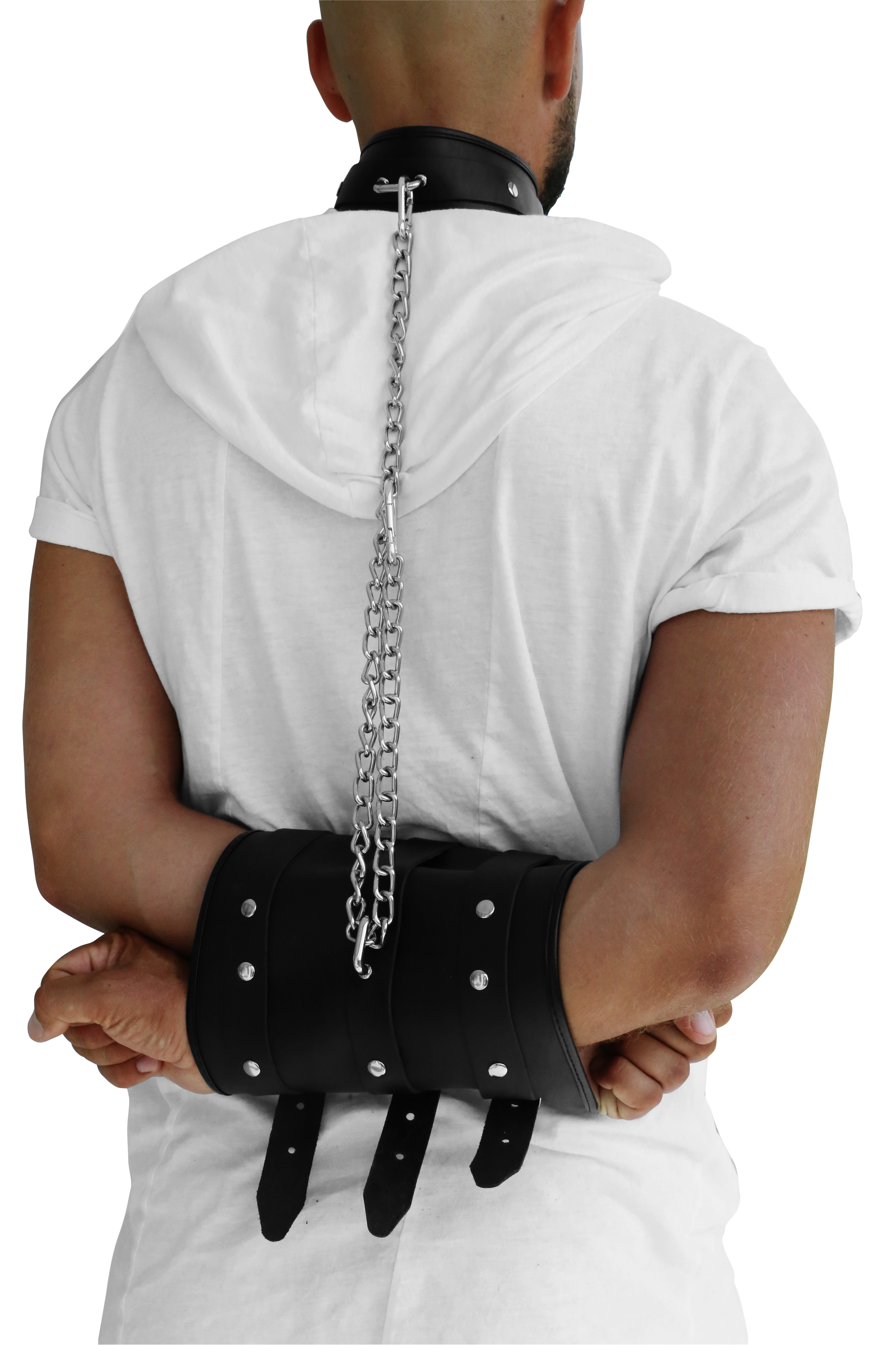 Lederhandfessel "Double" mit Halsband und Kette