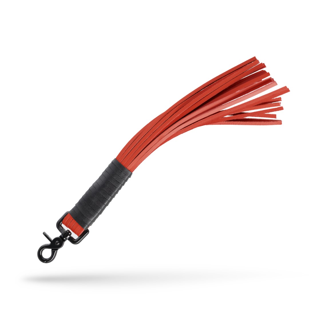Lederpeitsche mit Karabiner Schwarz/Rot