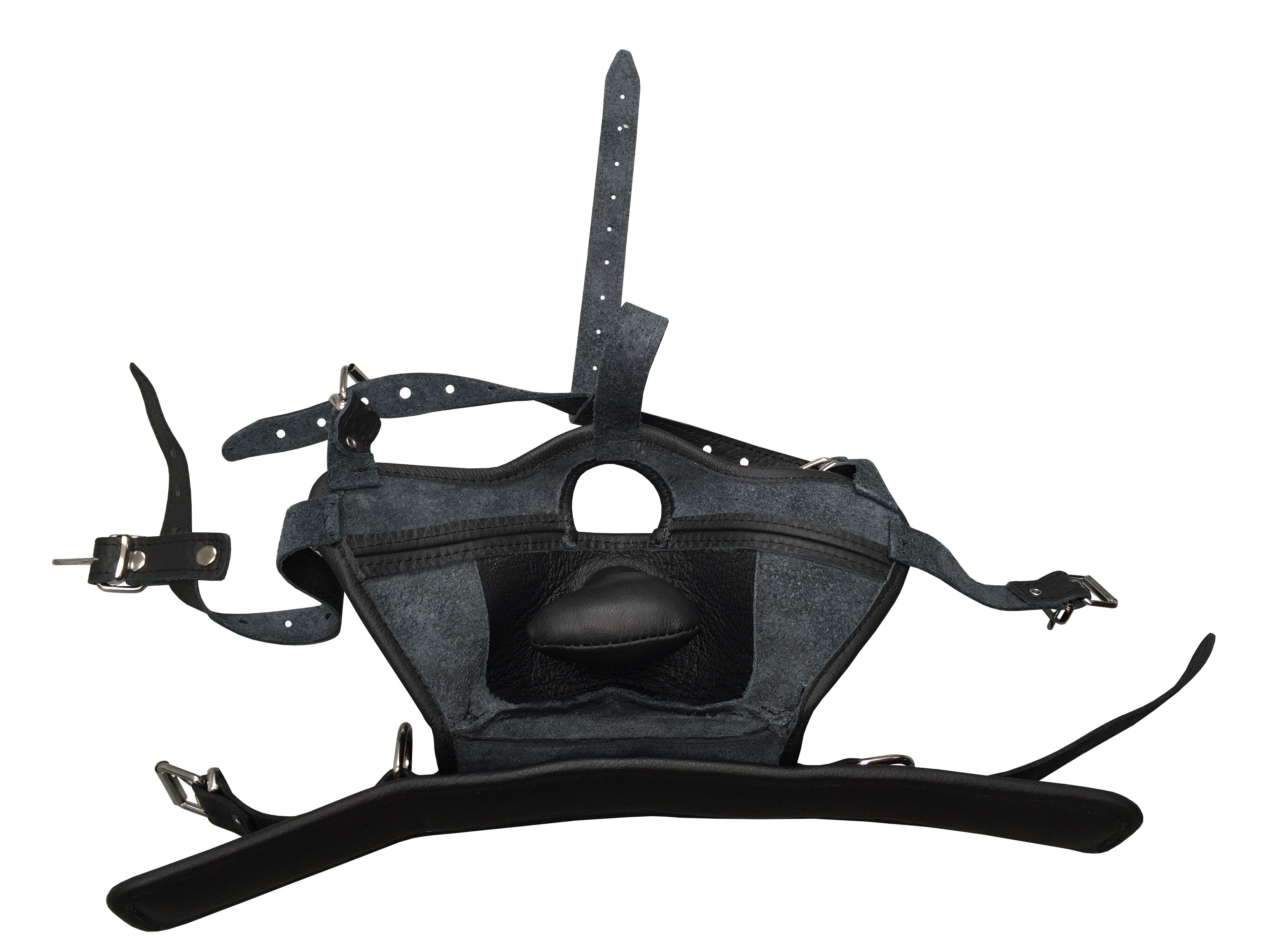 Mehrfach verstellbar. Mundknebel aus weichem Leder und Silikonfüllung.
