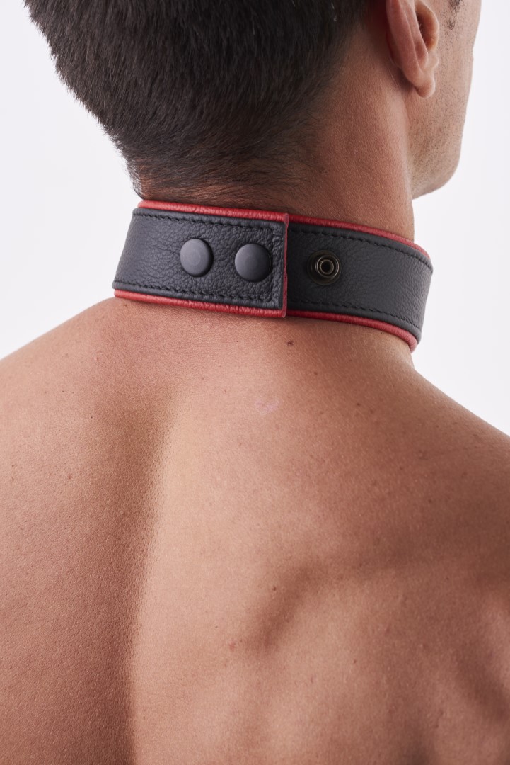 Soft Leder Halsband Schwarz/Rot