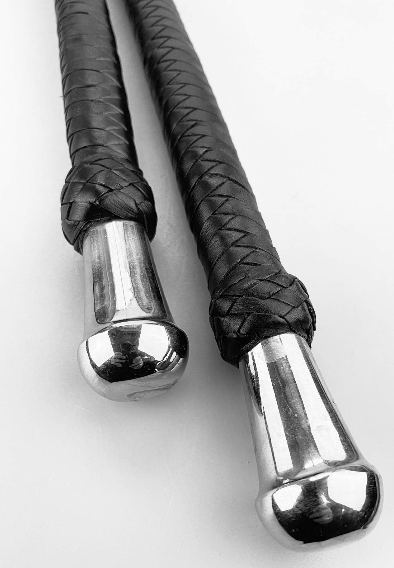 Schwarze SingleTail mit Silberknauf 78cm oder 93cm - Bitte auswählen